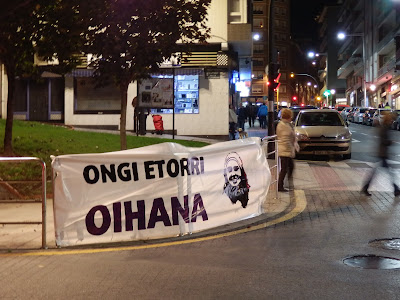Mas de 100 personas se concentran en Santurtzi a convocatoria de Etxerat para denunciar la situación que esta padeciendo la presa política vasca, Oihana Garmendia Marin. El pasado viernes 27 de noviembre, cumplió la condena impuesta en el estado francés y no tiene causas pendientes en el estado español, ya que están archivadas. Alegando tramites burocráticos la mantienen 3 días mas en prisión. El lunes ha sido ingresada en un centro de internamiento para inmigrantes en el aeropuerto de Lille (Francia) y no se sabe fecha para su regreso a casa. LA QUEREMOS EN CASA YA !!.
