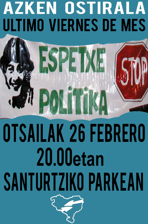 Eskerrak sakabanatuta zaudeten guztiei, espetxeetan zein mundu osoan zehar eman eta ematen duzuenagatik herri honen alde. Eskerrak errepresaliatuen ondoan zaintzen zaudeten senitarteko eta lagun guztiei. Animo! Zoragarriak zarete, zuena bai kemena!.