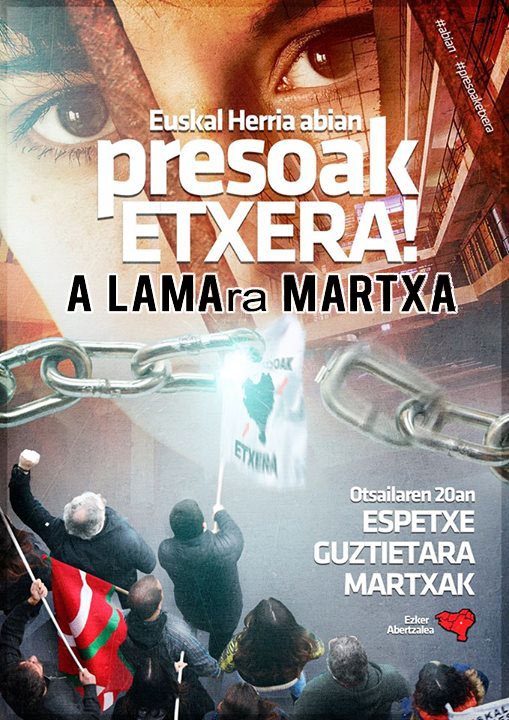 Eskerrak sakabanatuta zaudeten guztiei, espetxeetan zein mundu osoan zehar eman eta ematen duzuenagatik herri honen alde. Eskerrak errepresaliatuen ondoan zaintzen zaudeten senitarteko eta lagun guztiei. Animo! Zoragarriak zarete, zuena bai kemena!.