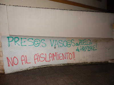 Además desde aquí nos solidarizamos con los/as presos políticos vascos que están actualmente en lucha en contra del aislamiento, ya sea realizando huelgas de hambre, plantes, chapeos, ... AURRERA.